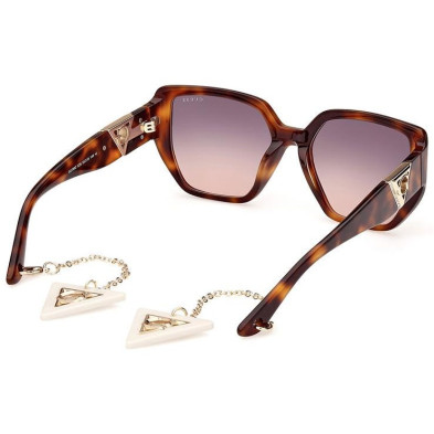 Gafas de sol GU7892 52B 140 mm. Gafas de sol de mujer de forma geométrica. Montura de plástico de color habana oscuro y cristales color humo degradado. Ancho de puente 18 mm, calibre (diámetro cristal) de 55 mm y patilla de 140 mm.