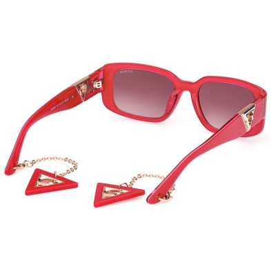 Gafas de sol GU7891 72T 140 mm. Gafas de sol de mujer de forma rectangular. Montura de plástico de color rosa brillante y cristales color burdeos degradado. Ancho de puente 18 mm, calibre (diámetro cristal) de 53 mm y patilla de 140 mm.