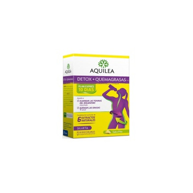 Aquilea Detox+Quemagrasas 10 sticks es un complemento nutricional que contribuye a neutralizar las grasas integradas en los alimentos para que no se acumulen en el organismo. Asimismo, ayuda a disminuir y a controlar la retención de líquidos que causa los principales signos de sobrepeso.