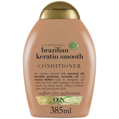 Gracias a que el Acondicionador de Keratina Brasileña de OGX está elaborado con ingredientes naturales y está libre de sulfatos, el cabello no sufre agresiones y logra un brillo perfecto.