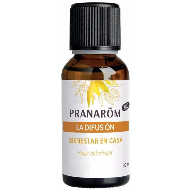 Pranarôm La Difusión Bienestar en Casa BIO 30ml es una mezcla de aceites esenciales ecológicos para difusión ambiental.