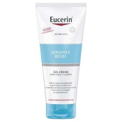 Eucerin After Sun Sensitive Relief Gel Cream 200ml es un gel-crema facial y corporal transparente que ayuda a recuperar y aliviar la piel tras la exposición solar, especialmente en pieles sensibles.