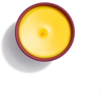 En su vaso de cristal laqueado en color burdeos, la vela Rose revela una cera de color amarillo sol que recuerda el corazón de su flor icónica.