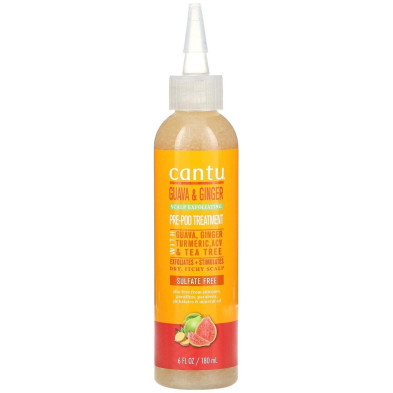 El tratamiento previo a al lavado perfecto para rizos, el tratamiento de limpieza previa exfoliante del cuero cabelludo de guayaba de Cantu ayuda a eliminar el exceso de grasa, suciedad y acumulación del cuero cabelludo para preparar el cabello para la limpieza posterior.