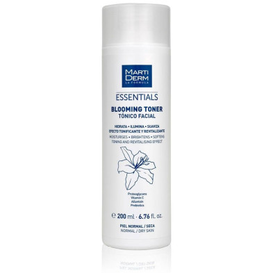 Martiderm Essentials Blooming Toner 200 ml es un tónico facial que facilita la revitalización de la piel. Su fórmula a base de caléndula y extractos de alantoína, contribuye a hidratar y suavizar el cutis, aportando un efecto antioxidante. Además, sus activos prebióticos contribuyen a proteger la piel del rostro de la acción de agentes externos actuando como una barrera protectora y ayudan a reequilibrar la flora cutánea. Este tónico está específicamente indicado para pieles normales o secas.