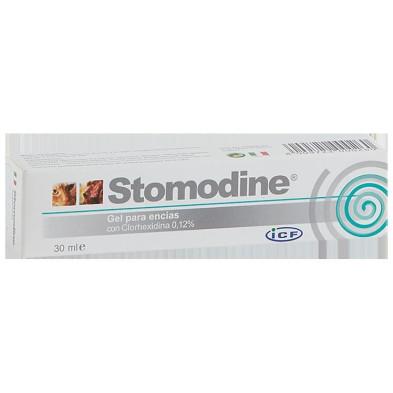Stomodine gel oral para el tratamiento y prevención de enfermedades de la cavidad bucal en perros y gatos.